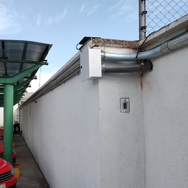 Proyecto: Instalación de enlace inalámbrico para conectar Planta de Producción con Bodega alterna. Se realiza la instalación de un enlace punto a punto mediante antenas de la marca UBIQUITI y nodos de red en Categoría 6 marca BELDEN. El enlace permitió establecer una comunicación inalámbrica y encriptada entre 2 edificios, pertenecientes al Cliente, separados por una distancia aproximada de 600 metros dentro del Parque Industrial Lerma.