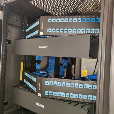 Proyecto: Enlace de fibra óptica para servicios administrados para proyecto MABE - Telmex Nevado . Se realiza instalación certificada por el fabricante BELDEN, puesta a punto y ejecución de pruebas de rendimiento para asegurar la correcta conexión entre los equipos de red activa.